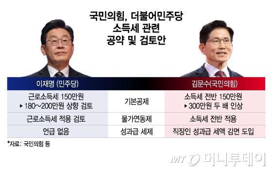 국민의힘, 더불어민주당 소득세 관련 공약 및 검토안/그래픽=이지혜 |