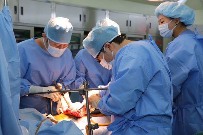 중앙대병원 간담췌외과 서석원 교수가 간이식 수술을 진행하고 있다.