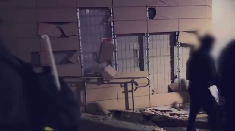 이들은 물건이나 벽돌 등을 법원 건물 외벽에 집어 던져 파손시킨 것으로 조사됐습니다.