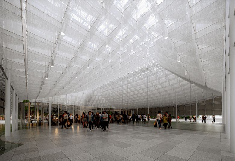 10월 13일까지 운영되는 한국관은 오사카의 인공섬 유메시마 엑스포장 내 3501㎡ 부지에 지어졌다. 총 440억원이 투입됐으며 3개 전시관으로 구성됐다. 한국관을 찾으면 가장 먼저 반기는 건 가로 27m, 세로 10m의 거대한 미디어 파사드다. LG디스플레이 패널을 사용한 이 미디어 파사드는 단순 홍보영상이 아닌 미디어 아트가 상영된다. 관람객이 입장을 기다리며 서 있는 전시관 초입에는 288개의 한산모시가 겹겹이 거대한 차양을 드리웠다. 한산모시 모듈은 광화문 우진각 지붕의 곡선미를 차용해 만들었다.