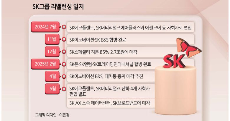 SK그룹이 인공지능(AI), 반도체, 에너지 등 핵심사업을 중심으로 한 리밸런싱(사업조정)의 1차 밑그림을 완성했다. 급변하는 경영 환경에 선제 대응하기 위해 시작된 리밸런싱 작업이 2년 차를 맞아 윤곽을 드러낸 셈이다. 이로써 그룹 계열사 수는 1년 9개월만에 200개 밑으로 떨어졌다.