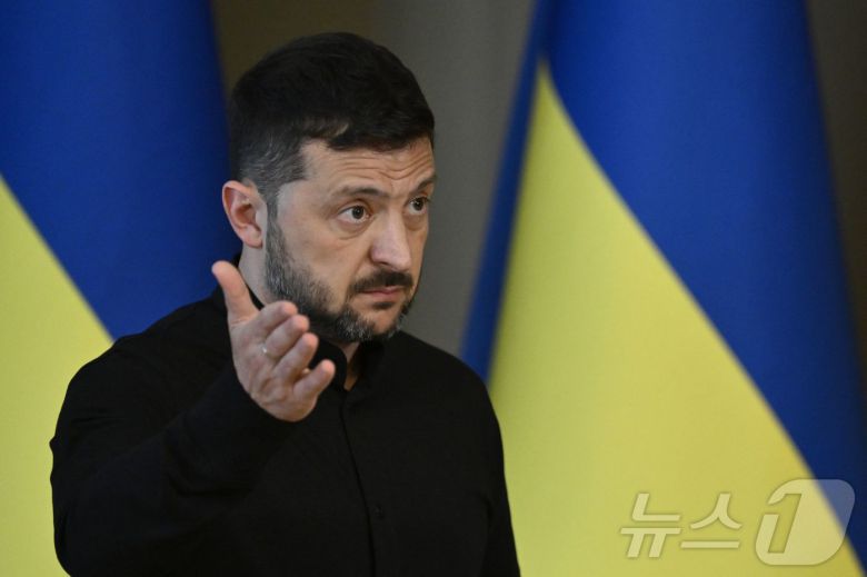 (키이우 AFP=뉴스1) 우동명 기자 = 볼로디미르 젤렌스키 우크라이나 대통령이 13일(현지시간) 키이우에서 기자회견을 갖고 “튀르키예에서 예정된 러시아-우크라이나 종전 회담과 관련해 블라디미르 푸틴 러시아 대통령이 직접 나오지 않으면 러시아 측과 만나지 않을 것이다”고 밝히고 있다. 2025.05.14 ⓒ AFP=뉴스1