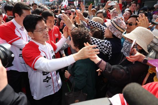 공식 선거운동 첫날부터 사흘째 '보수 텃밭' 영남권을 집중 공략 중인 김 후보는 '경남을 항공우주 산업 중심지로 키우겠다'며 지지를 호소했다.