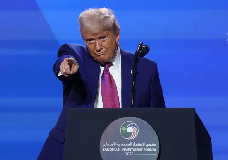 도널드 트럼프 미국 대통령이 13일(현지시간) 사우디·미국 투자 포럼에서 연설하고 있다. 리야드/EPA연합뉴스 |