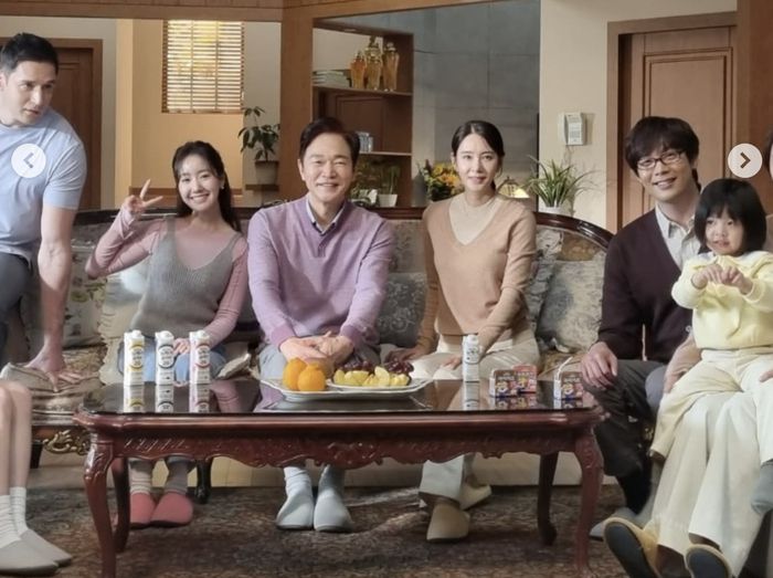 사진에는 광고 촬영을 위해 정보석, 오현경, 최다니엘, 황정음, 줄리엔강, 서신애, 진지희가 모인 모습이 담겼다.
