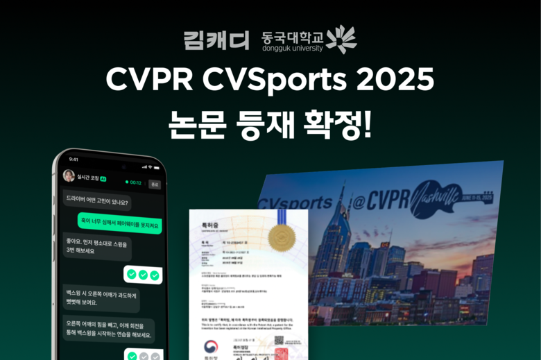 해당 논문은 ‘CaddieSet: A Golf Swing Dataset with Human Joint Features and Ball Information’이라는 제목으로, 실제 사용자 기반 골프 스윙 분석을 위한 데이터셋을 소개하고 있다. 김캐디 AI팀 소속 최재림, 홍서영 연구원을 비롯해 동국대학교 컴퓨터학부 이우진 교수 연구실 소속 연구진, 중앙대학교 김호기 교수가 공동으로 연구에 참여했다.