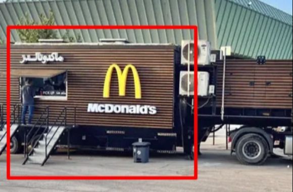 13일(현지시간) 사우디아라비아가 도널드 트럼프 미국 대통령 방문에 맞춰 리야드 그린홀에 2500명 이상의 국내외 언론인을 수용할 취재지원센터 ‘미디어 오아시스’를 꾸리면서 함께 도입한 ‘이동식 맥도날드’ 푸드트럭. 아랍어와 영어로 된 맥도날드 간판이 보인다. 2025.5.13 엑스