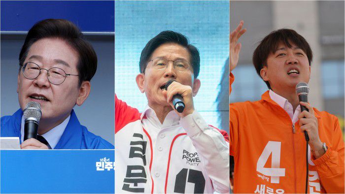 [구미·울산=뉴스핌] 정일구 최지환 기자 = 이재명 더불어민주당 대통령 후보(왼쪽부터), 김문수 국민의힘 대통령 후보, 이준석 개혁신당 대통령 후보가 13일 구미·울산·대구에 열린 집중유세에서 지지를 호소하고 있다. [이준석 사진=이준석 캠프] 2025.05.13 photo@newspim.com