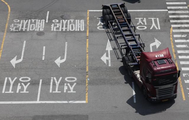 지난달 24일 인천 연수구 인천신항 컨테이너 터미널에서 트레일러가 이동하고 있다. 뉴시스 |