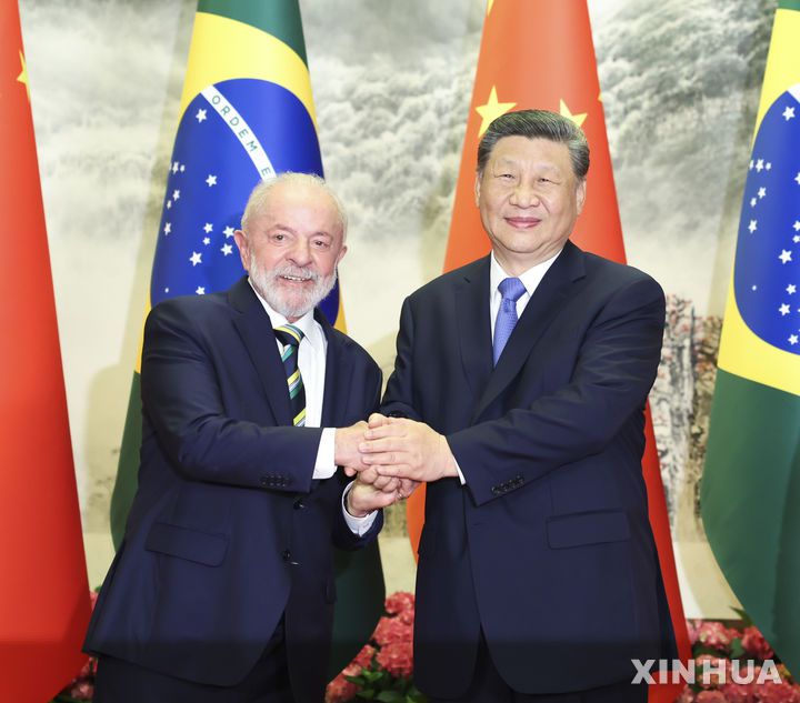 그러면서 "브라질은 중국과 함께 국제 문제에서 전략적 협력을 강화해 '글로벌 사우스'(주로 남반구에 있는 신흥국과 개발도상국)의 공동이익을 지키고 국제 공정과 정의를 수호하겠다"고 덧붙였다.