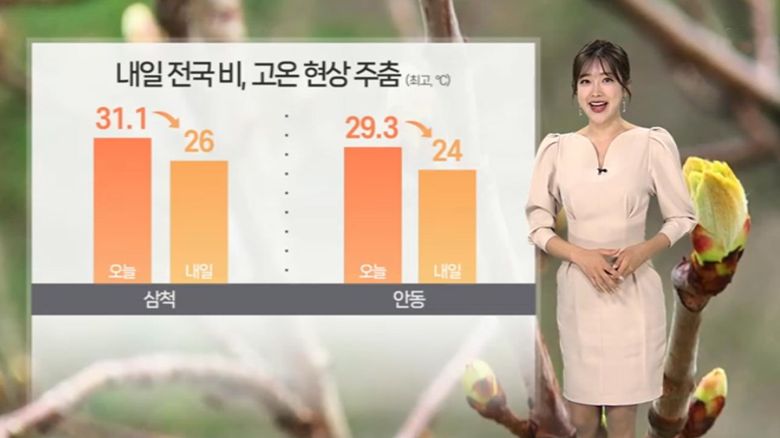 내일은 비가 내리면서, 때 이른 고온 현상은 잠시 누그러들겠습니다.