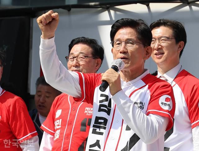 보수 텃밭 수성에 나선 김문수 국민의힘 대선 후보는 14일에도 부산·울산·경남(PK) 지역을 누볐다. 전날엔 부산과 울산 표심을 다졌고 이날은 경남 진주에서 시작해 사천, 창원, 밀양을 거쳐 양산까지 돌며 광폭 행보를 했다. 이재명 더불어민주당 대선 후보에게 보수 텃밭까지 내줄 위기에 처하자 사활을 거는 모습이었다. 특히 김 후보는 우주·항공·방산 산업 등에 특화된 경남의 특성을 살려 "경제, 민생, 일자리 대통령이 되겠다"며 목소리를 높였다.