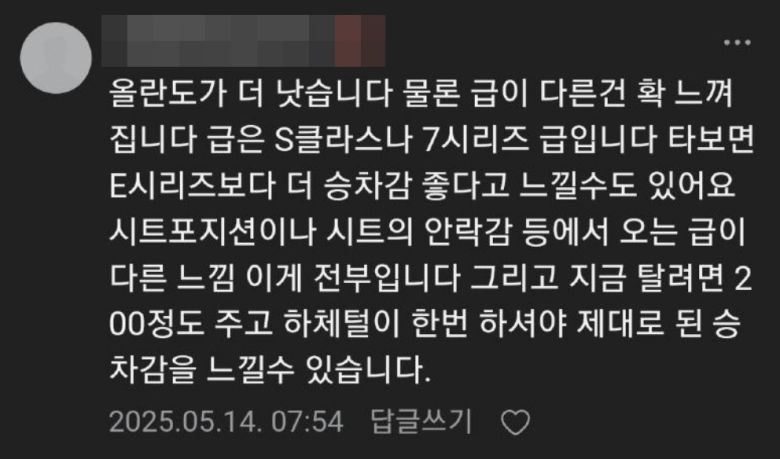 하지만 일부는 “경쟁모델 중 좋은 편에 속한다”는 다른 동호회원들 주장을 쉽사리 받아들이지 못했다. 되레 한 차주는 ‘메르세데스 벤츠의 최상급 세단인 S클래스나 BMW 7시리즈와 동급’이라고 강조하기도 했다.