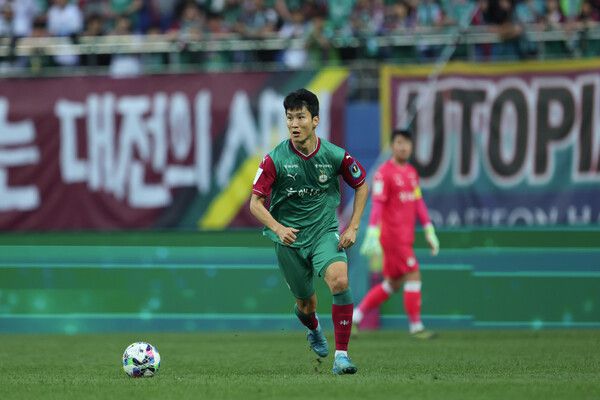대전에도 기회가 왔다. 12분 김현욱의 왼발 프리킥기 골대 오른쪽 바깥 그물을 흔들었다. 골이라 착각했던 대전 팬들에게서 탄식이 나왔다. 18분 김준범이 아크 앞에서 혼자 슈팅 기회를 만들었지만, 볼은 허공으로 향했다.