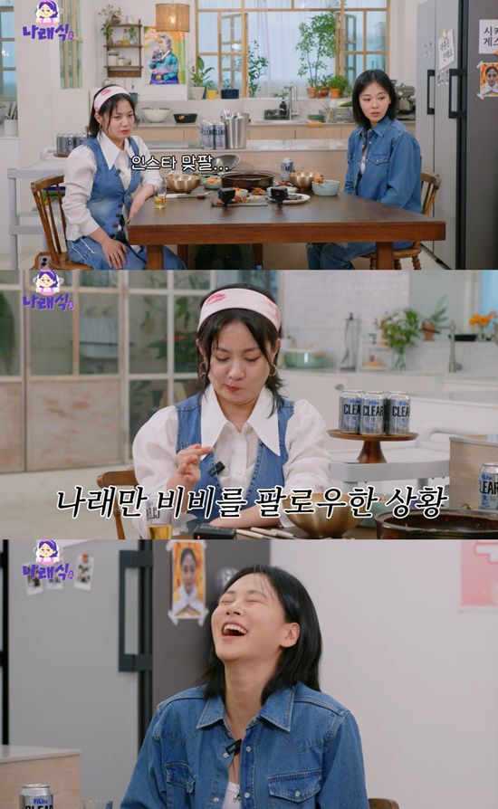 식사하며 다양한 이야기를 나누던 중, 박나래는 "물어보기 좀 부끄러운데"라며 소셜미디어 맞팔로우를 언급했다. 이에 놀란 비비는 "팔로우가 돼 있으신 줄 몰랐다"며 급히 휴대폰으로 자신의 계정을 확인했다.