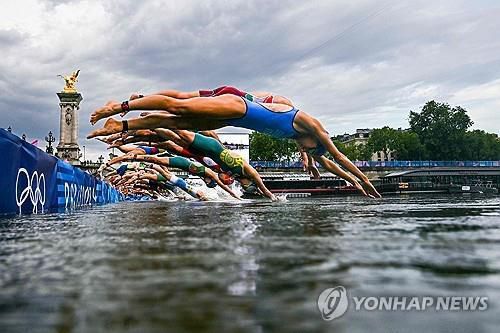 지난해 7월31일 센강에서 치러진 여자 트라이애슬론 수영 경기. |