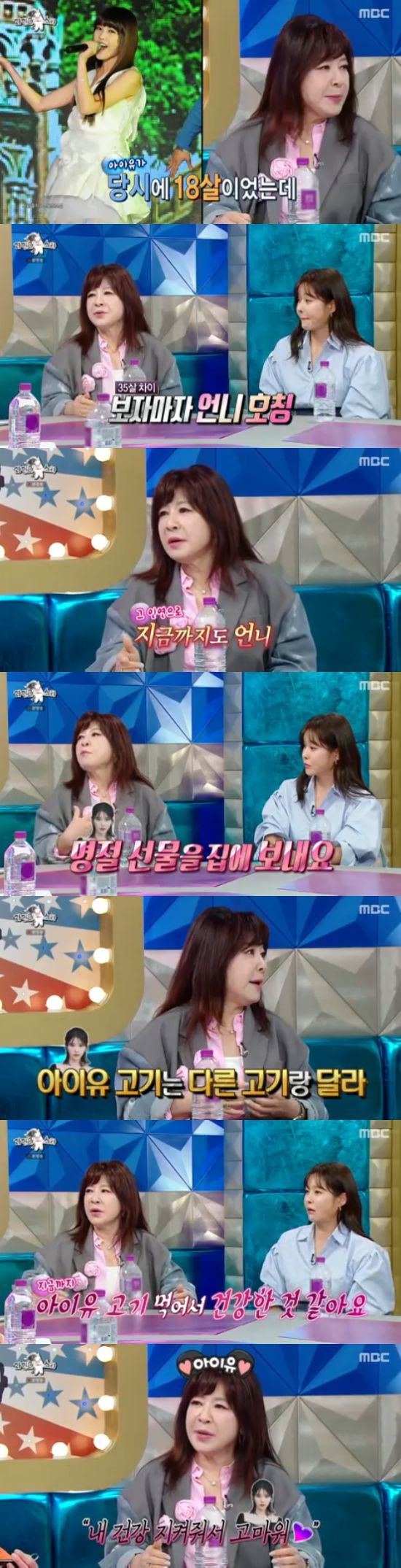그러면서 "로열젤리, 석청 이런 것도 보내주고, 요즘에는 고기로 바뀌었다. 그런데 고기가 다르다. 너무 특별해서 아들도 안 주고 나만 먹는다. 그 고기를 먹어서 내가 건강한 것 같다. 이 자리를 통해서 아이유에게 고맙다고 말하고 싶다"면서 고마워했다.