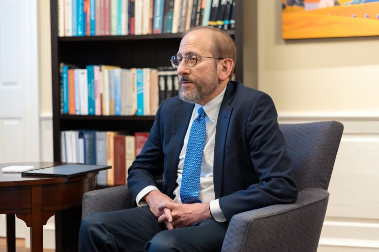 앨런 가버 하버드대 총장은 14일 정부의 연방 지원금 삭감에 대응하기 위한 방안 중 하나로 자신의 급여 25%를 자진 삭감한다고 밝혔다./하버드크림슨