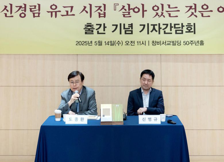 출간을 앞두고 14일 서울 마포구 창비사옥에서 열린 유고시집 출간 간담회엔 도 시인과 고인의 차남인 신병규 씨, 송종원 문학평론가가 참석했다. 도 시인은 “시집에 실을 시들을 검토하면서 ‘한결같다’는 말이 제일 먼저 떠올랐다”고 했다.