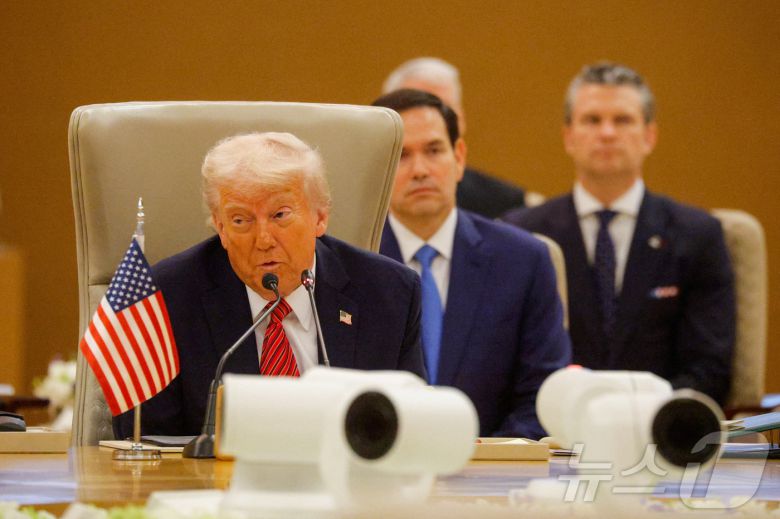 도널드 트럼프 미국 대통령이 14일(현지시간) 사우디아라비아 리야드에서 열린 걸프협력회의(GCC)에서 연설하고 있다. 2025.05.14 ⓒ 로이터=뉴스1 ⓒ News1 류정민 특파원 |