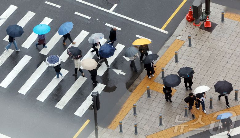 전국 대부분 지역에 비가 내린 9일 오후 서울 종로구 종각역 인근에서 우산을 쓴 시민들이 발걸음을 옮기고 있다. 2025.5.9/뉴스1 ⓒ News1 김진환 기자 |