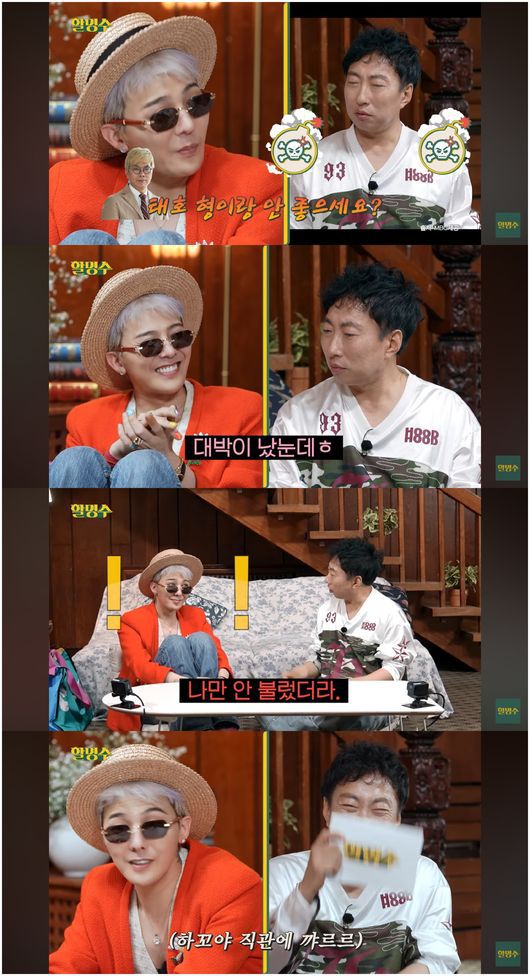 [OSEN=오세진 기자] '할명수' 박명수가 오랜만에 만난 GD에게 근황을 물어봄과 동시에 서운함을 표현했다.