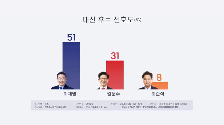 갤럽 "이재명 51%·김문수 31%·이준석 8% 지지"