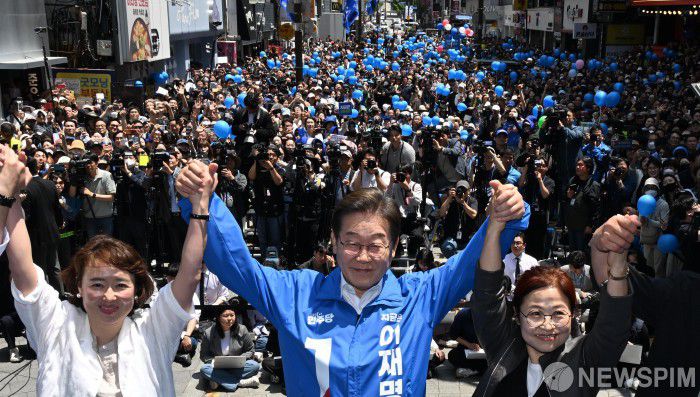 이재명 후보는 '국민통합'을 강조하고 있다. 보수와 진보 등으로 양분된 정치지형을 이제는 '하나의 대한민국'으로 통합하겠다는 것이다. 그는 공식선거운동 첫날인 지난 12일 서울 공화문 청계광장에서 대선 출정식을 열고 "모든 국민의 후보로서 이번 선거에 임하겠다"고 했다.