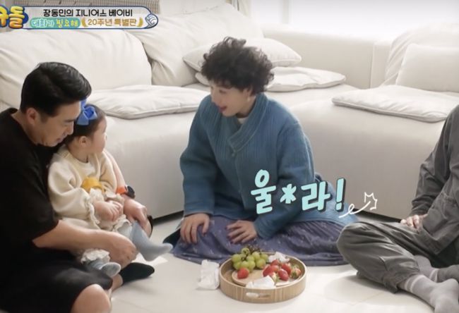 하지만 장동민 딸은 “안 그래도 예뻐요”라며 따뜻한 한 마디를 건넸고, 이에 감동한 신봉선은 “그럼 이제 1년에 한 번씩 하겠다”며 현장을 웃음바다로 만들었다. 이어 장동민 딸이 “근데 할머니(신봉선)보다 딸기가 더 예뻐요”라고 솔직 발언을 던지자, 신봉선은 “똑똑하다 들었는데 오늘 컨디션 안 좋은가 보다”고 재치 있게 받아쳐 또 한 번 폭소를 안겼다.