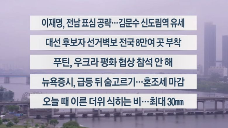 국민의힘 김문수 후보는 신도림역에서 출근길 유권자들을 만나고, 개혁신당 이준석 후보는 교사들과 만난 뒤 혜화역에서 집중 유세를 펼칩니다.