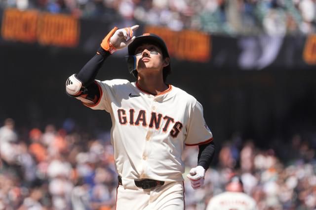 샌프란시스코 이정후가 15일(한국시간) 미국 캘리포니아주 샌프란시스코 오라클 파크에서 열린 2025 미국 메이저리그(MLB) 애리조나전에서 7회말 투런 홈런을 날린 후 세리머니를 하고 있다. 샌프란시스코=AP 연합뉴스