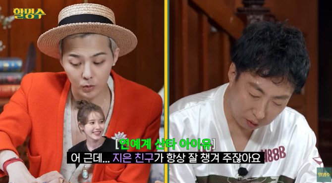 이어 박명수는 “아이유나 이런 게스트가 오면 감사의 표시로 뭘 하느냐”고 물었고 지드래곤은 “지은 친구가 항상 잘 챙겨주지 않나. 선물로 냉장고가 왔더라”라며 “광고하는 주류를 가득 채워서 보내줬다”고 설명했다.