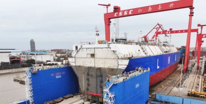 [자료 = CSSC HOLDINGS 공식 홈페이지] 2025년 2월 14일 'CSSC 강남조선(江南造船)'은 17만5000 입방미터의 대형 LNG 운반선 시리즈 프로젝트에서 중대한 이정표적 기록을 달성했다.