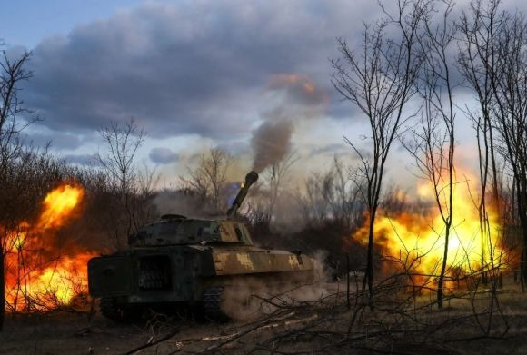 2025년 3월 23일, 우크라이나 헤르손 주에서 러시아군 진지를 향해 자주포를 발사하는 우크라이나군. 게티 이미지 / 멀티비츠