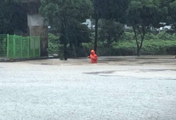 여수시 중흥동 중흥천 인근 도로가 침수돼 소방대원이 안전조치를 하고 있다. [사진=여수소방서] |