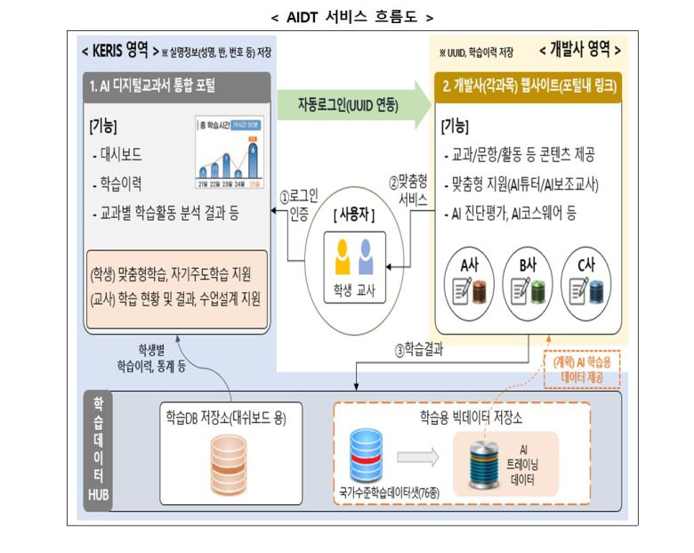 AIDT 서비스는 종이 교과서와 다르게 학생별 학습 이력을 데이터베이스화해 저장하고 개인 맞춤형 콘텐츠를 제공하는 등 개인정보 처리가 필요하다.