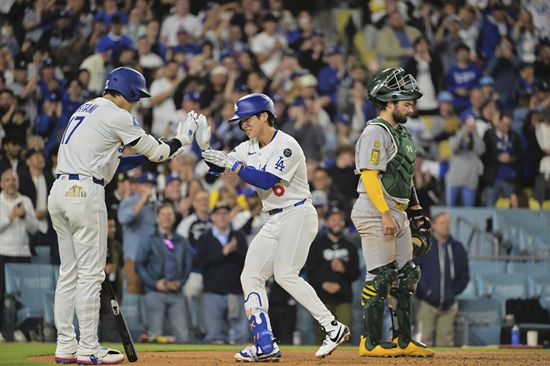 김혜성은 15일(한국시간) 미국 캘리포니아주 로스앤젤레스 다저스타디움에서 2025 메이저리그 오클랜드 애슬레틱스와 홈경기를 치러 2타수 2안타 1홈런 1타점 1득점을 기록했다.