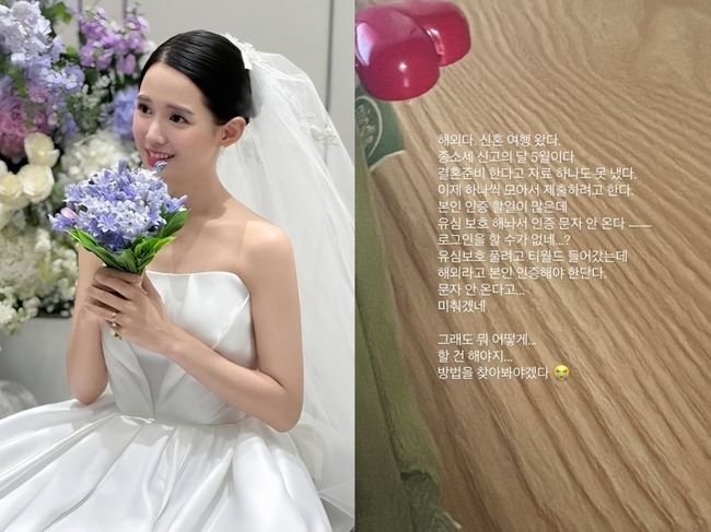 남보라는 15일 자신의 인스타그램 스토리를 통해 신혼여행 중 휴대폰 유심 관련한 문제를 토로했다.