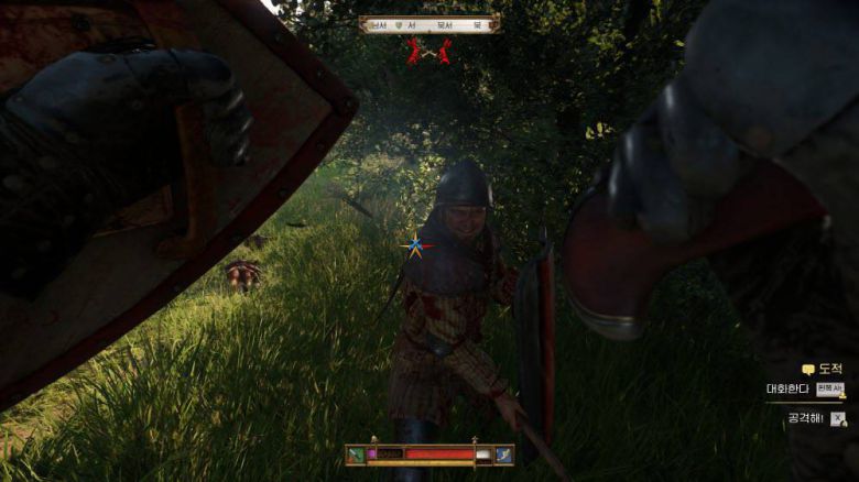 게임의 전투는 1인칭 시점에서 박진감을 잘 살린 시스템을 갖췄다. 실제 무기와 전투 스타일이 다양하게 준비되어 있으며, 초록색 방패 모양 아이콘이 표시될 때 활용할 수 있는 패링 시스템이 이용자들의 관심을 끌었다. 마치 리듬 게임을 즐기듯 정확한 타이밍에 맞춘 패링과 적의 움직임에 대응하는 전투가 중세 전투의 공방을 잘 구현해 게이머들에게 호평을 받았다.