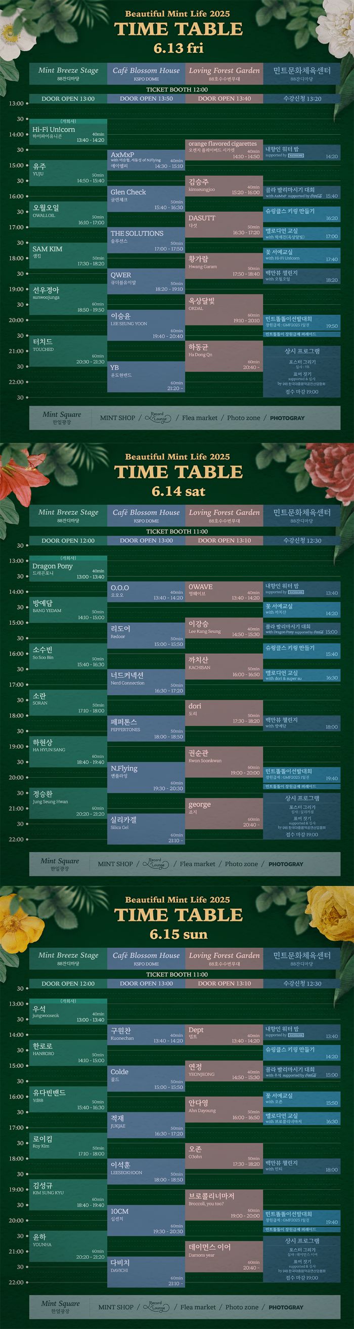 6월 13일부터 15일, 총 3일간 송파구 올림픽공원에서 진행되는 ‘뷰티풀 민트 라이프 2025(Beautiful Mint Life 2025, 이하 뷰민라)’의 최종 타임테이블과 각 일자별, 스테이지별 헤드라이너가 공개됐다.