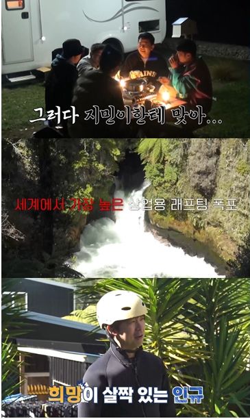 앞서 독박즈는 로토루아 호숫가에 위치한 캠핑장 내에서 푸짐한 만찬을 즐겼던 터. 장 셰프 장동민의 진두지휘 아래 양고기 바비큐와 초록입홍합 짬뽕을 먹으며 먹텐을 끌어올린 이들은 밤이 깊도록 술잔을 기울인다.