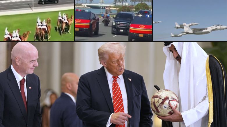 카타르가 트럼프의 방문에 낙타, 말, 사이버트럭, 전투기를 동원해 '극진한 예우'를 갖췄습니다. 상공에서는 전투기 8대가, 지상에서는 낙타와 말 수십 마리, '테슬라'의 사이버트럭이 트럼프를 호위했습니다.