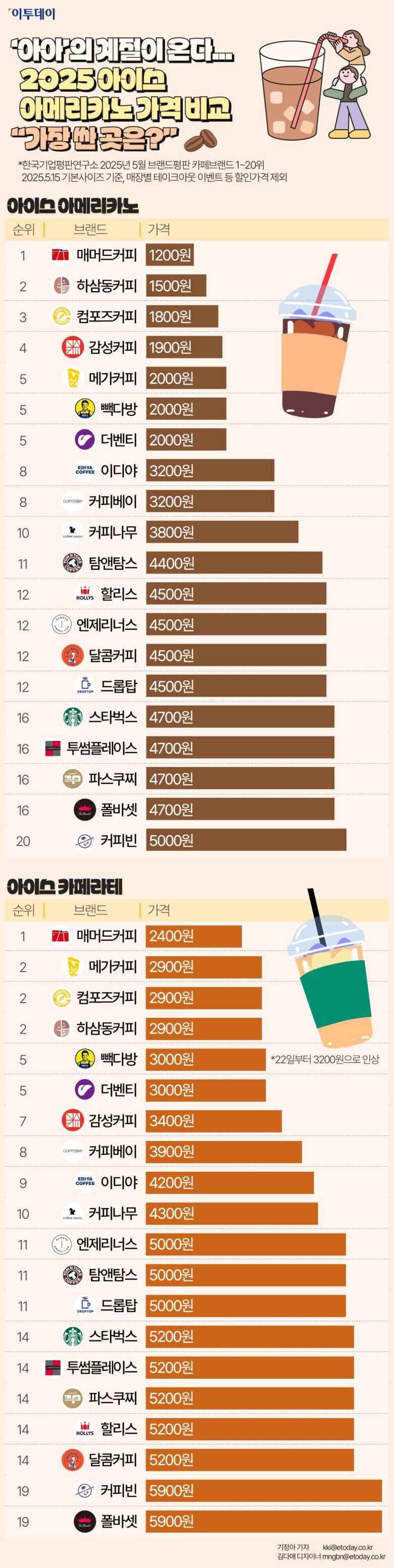 (*한국기업평판연구소 2025년 5월 브랜드평판 카페브랜드 1~20위, 2025.5.15 기본사이즈 기준, 매장별 테이크아웃 이벤트 등 할인가격 제외)◇아이스 아메리카노