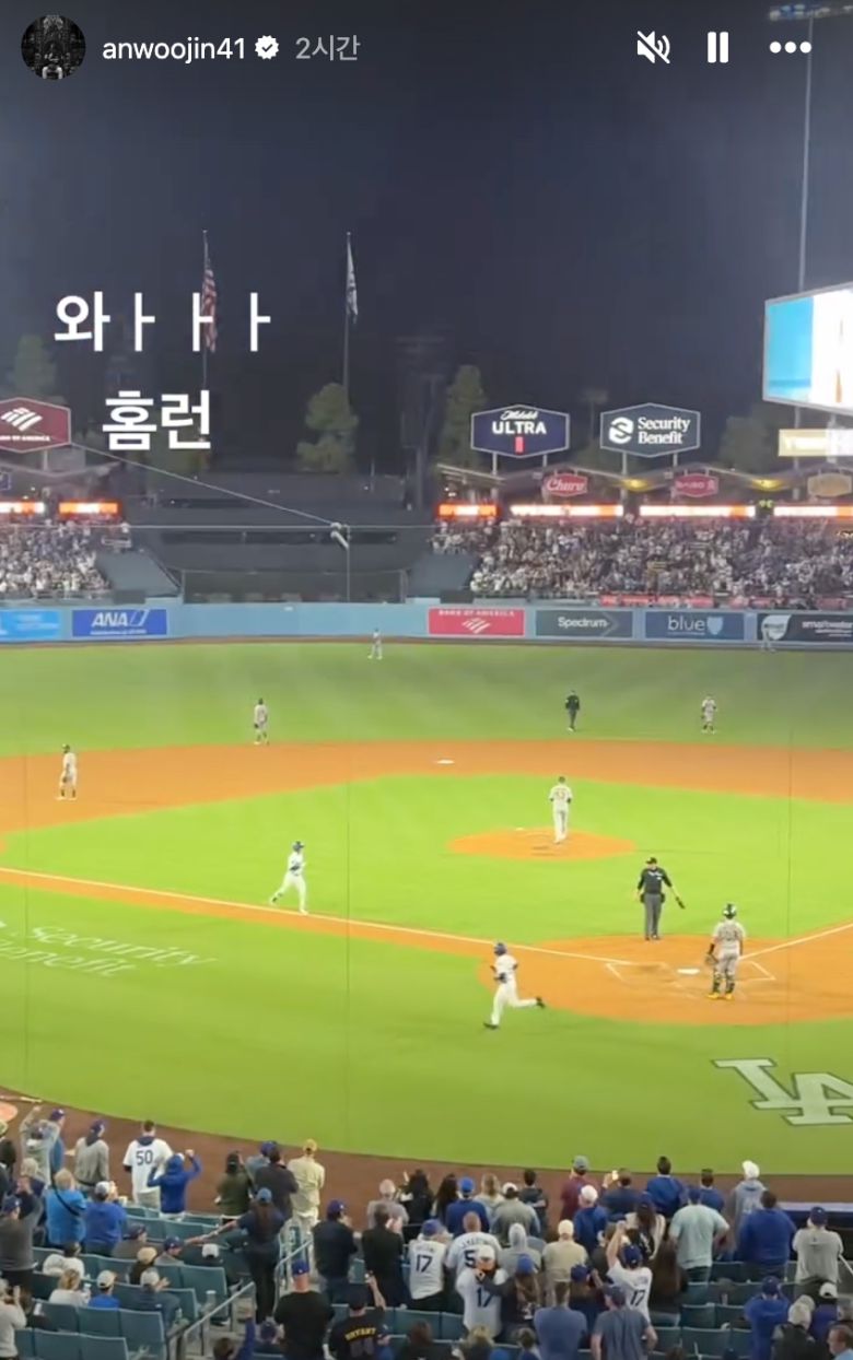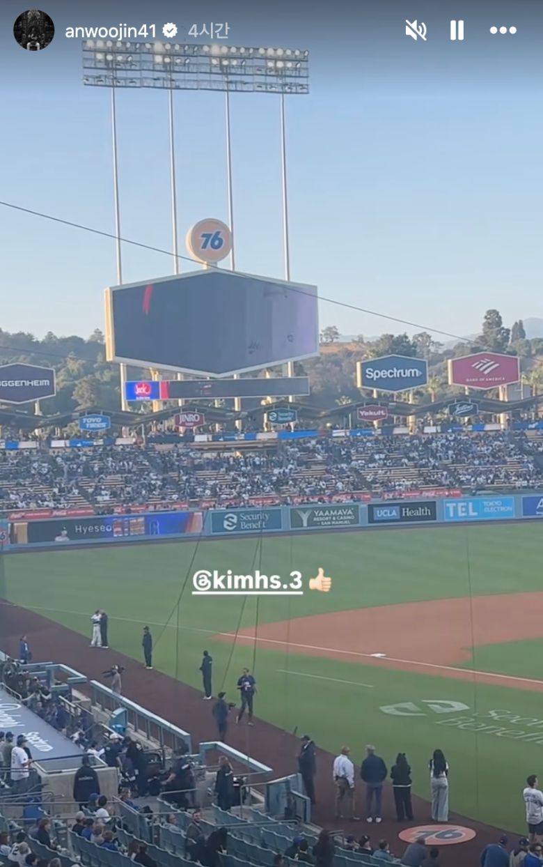 사회복무요원으로 군 복무 중인 안우진은 현재 미국에 체류하고 있는 것으로 알려졌다. 경기 전 자신의 인스타그램 스토리에 선발 라인업 소개 영상에 등장하는 김혜성의 모습을 그의 계정과 함께 태그해 업로드한 안우진은 1시간 후 또 하나의 영상을 더 올렸다. 바로 김혜성이 홈런을 친 뒤 그라운드를 도는 모습. 안우진은 영상에 '와 홈런'이라는 글을 덧붙였다.