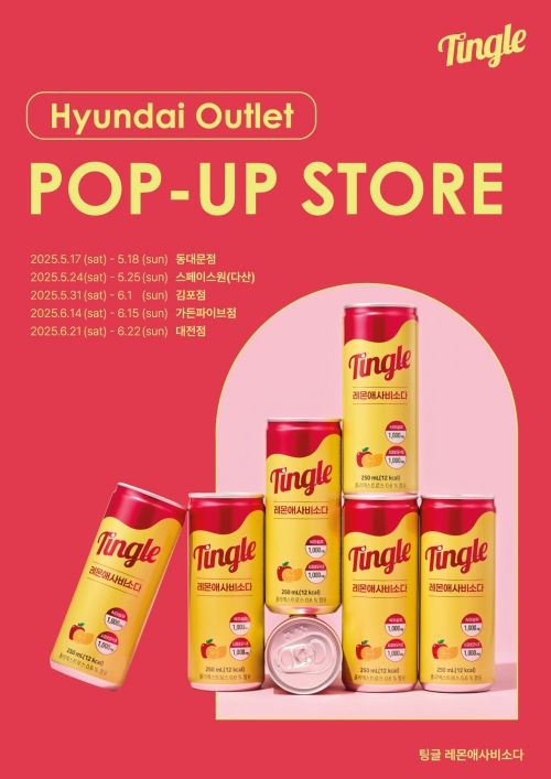 일화가 전국 현대 프리미엄 아울렛에서 프리미엄 고과즙 저칼로리 탄산음료 브랜드 ‘팅글(Tingle)’ 팝업스토어를 연다고 15일 밝혔다.