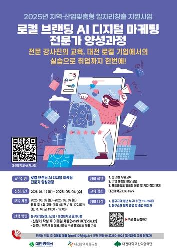 (대전=연합뉴스) ▲대전대, 로컬 브랜딩 AI 디지털 마케팅 전문가 양성과정 운영 = 대전대는 다음 달부터 동구 지역 청년과 대학 졸업(예정)자를 대상으로 '로컬 브랜딩 인공지능(AI) 디지털 마케팅 전문가 양성 과정'을 운영한다고 15일 밝혔다.