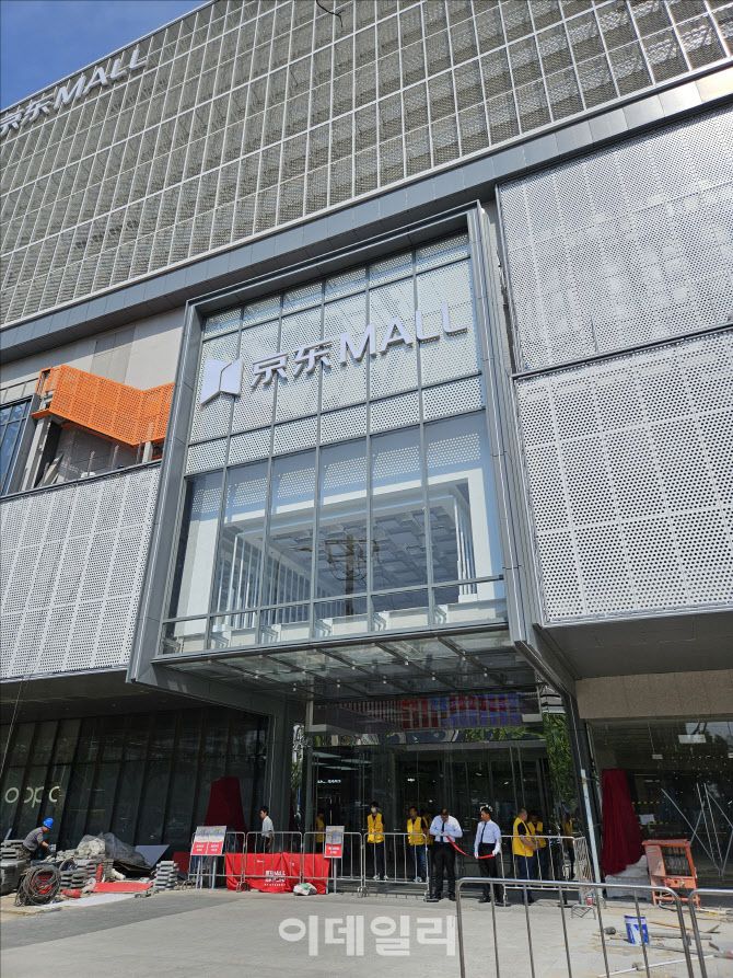 중국 베이징시 펑타이취에 위치한 징둥 쇼핑몰, 개장을 앞두고 정비 작업이 한창이다. (사진=이데일리 이명철 특파원) |