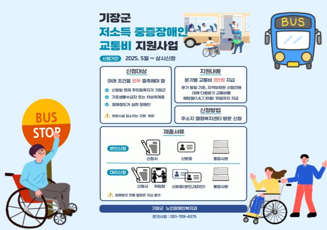 기장군 저소득 중증장애인 대상 교통비 지원사업 안내문[사진=기장군] |