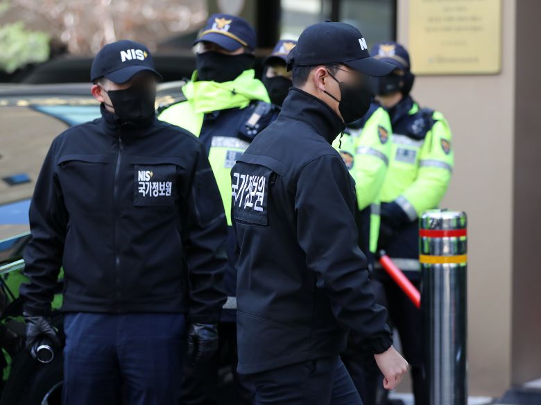 2023년 1월 국정원이 서울 영등포구 전국보건의료산업노동조합 사무실에 대한 압수수색 영장을 집행하던 모습. /뉴스1 |