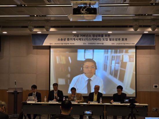 한국기업거버넌스포럼은 15일 서울 여의도 한국경제인협회에서 '기업 거버넌스 정상화를 위한 소송상 증거개시제도(디스커버리) 도입 필요성과 효과'라는 주제로 세미나를 진행했다.
